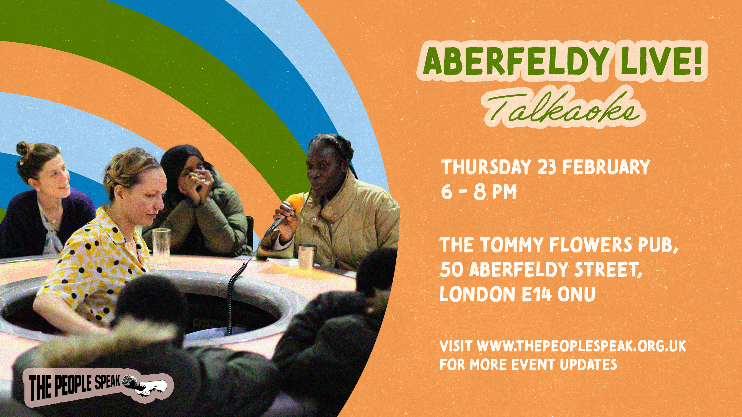 Welcome to Aberfeldy Live! Talkaoke – an interactive pop-up talkshow, where you, the participants, set the agenda. Every month we report live from the streets of Poplar and further afield via Zoom about all the matters local and global.