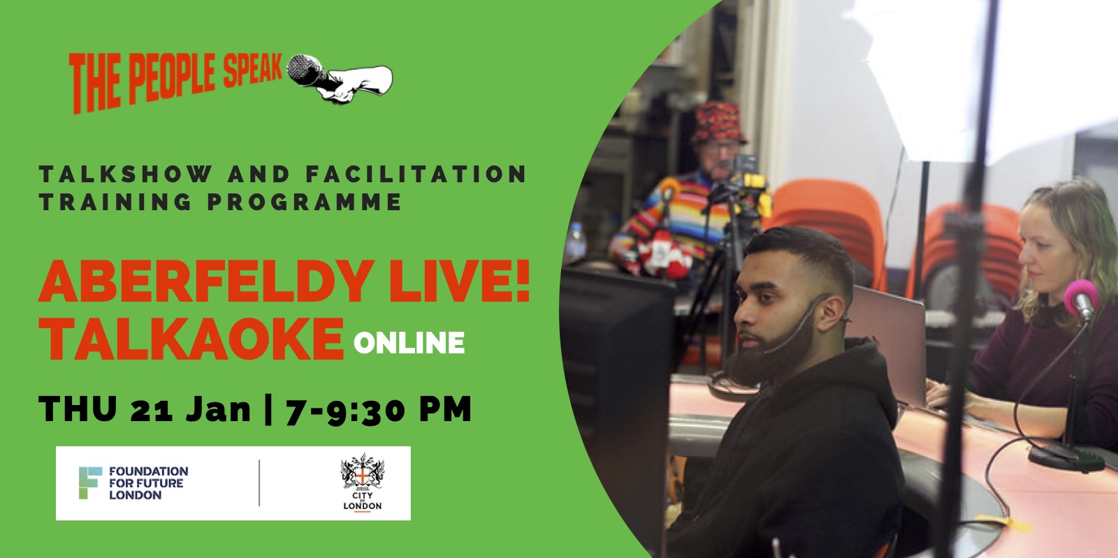 Welcome to Part 8 of the online / offline session of Aberfeldy Live! Talkaoke – a pop up talkshow by The People Speak. Every last Thursday of each month we will report live from the streets of Poplar and through Zoom about the subjects that matter to you.